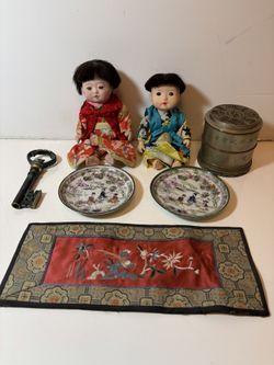Asian Décor Lot – Dolls, Plates, Silk Embroidery, Brass Key & Incense Burner (7 pcs)$50Las Vegas, NV