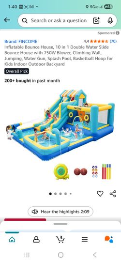 FINCOME Inflatable Bounce House, 10 in 1 Double Water Slide Bounce House with 750W Blower, Climbing Wall, Jumping, Water Gun, Splash Pool, Basketball $350Magnolia, NJ