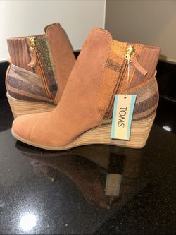 Toms Sadie Boots Brown Suede & Plaid Ankle Wedges Comfort Shoes size 10 Bootie$45Los Angeles, CA