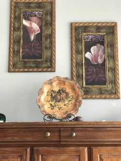 Two pictures and decorate plate with stand$70Oakdale, MN