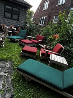 Vintage Smith & Hawkins Teak Chair and Ottomans set of 2 with red cushions $500Lincolnwood, IL