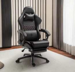 Dowinx Gaming/Office PC Chair with Massage Lumbar Support, Vintage Style PU Leather High Back Adjustable Swivel Task Chair with Footrest (Black and Re$200Chino, CA