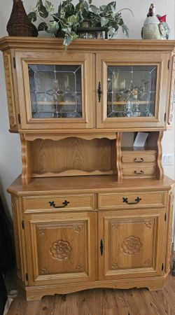 Carved Floral Real Wood Natural Oak Kitchen Cupboard China Hutch Buffet Cabinet$400Rancho Cordova, CA