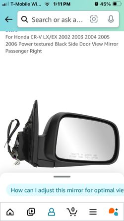 Honda CR-V LX/EX 2002 2003 2004 2005 2006 Power textured Black Side Door View Mirror Passenger Right$40Martinez, CA