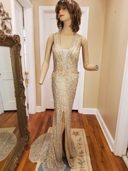GOLD SEQUIN GOWN, Size 6ish, Silver Accent, Train, GORGEOUS!$45Fayetteville, GA