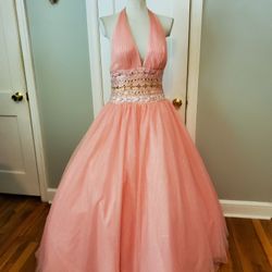 TIFFANY Pink Cinderella Gown, Size 10/12, Halter, Silver And Gold Beads $79Fayetteville, GA