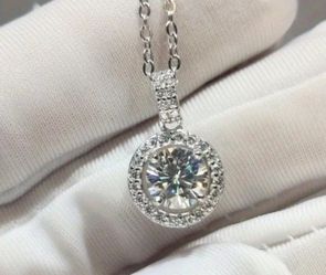 1 Carat Moissanite Halo Pendant, 18k White Gold-Plated, 925 Sterling Silver Necklace$100San Diego, CA