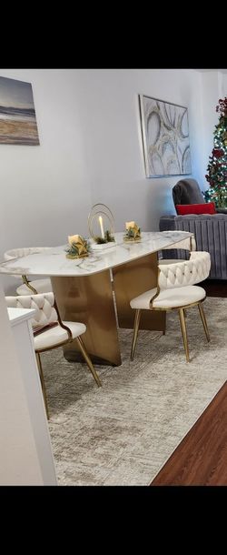 Modern Sintered Stone Dining Table With Gold Metal Base$500Medley, FL