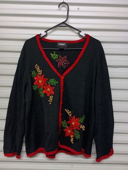 Designer Originals Studio Joy Beaded Poinsettia Christmas Cardigan Sweater , Size XL$20Largo, FL