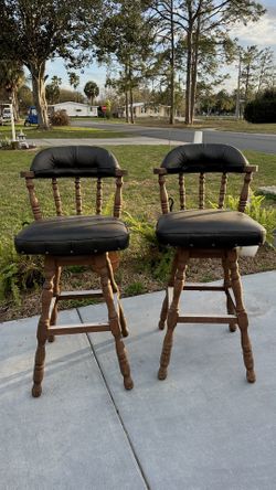 2 VINTAGE WOODEN BARS SWIVEL STOOLS DARK BROWN LEATHER CUSHIONS$100Lady Lake, FL