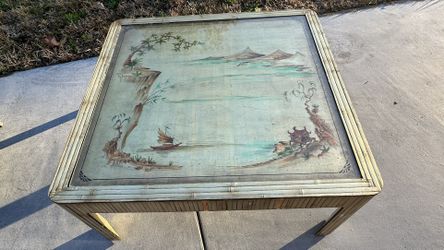 BEAUTIFUL UNIQUE VINTAGE GLASS TOP BAMBOO WOOD ASIAN COFFEE TABLE HAND-PAINTED LANDSCAPE UNDER GLASS$1,000Lady Lake, FL