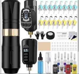 Wireless Tattoo Gun Kit, Rotary Tattoo Pen with 1500mAh Battery, Screen Display, 20 Cartridge Needles, 10 Inks, Complete Tattoo Gun Kit for Beginners $50Fountain Valley, CA