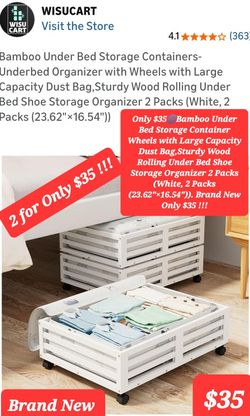 $35🌐Bamboo Under Bed Storage Containers w/Large Capacity Dust Bag, Sturdy Wood Only $35 for 2$35Plainfield, IL