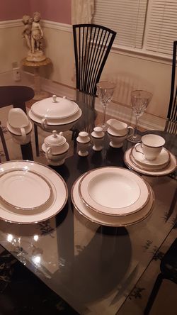 Lennox Platinum Gold trimmed China set of 8 Plates, 8 coffee Cups, 8 Salad Bowls, 8 Soup Bowls, 8 Wine Glass, Etc. 78 pieces.$700South Norfolk, VA