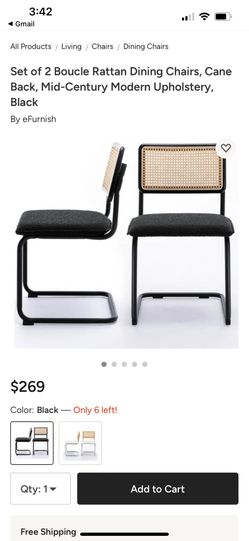 Set of 2 Boucle Rattan Dining Chairs, Cane Back, Mid-Century Modern Upholstery, Black$150Playa Del Rey, CA