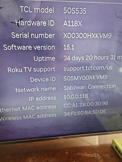 Tcl 4k tv 50 inch$200Hayward, CA
