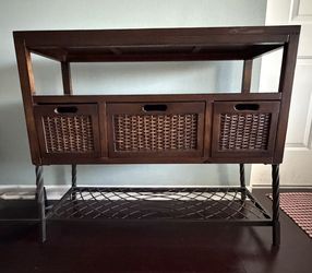 Console table + 2 tall basket towers (wood/metal/wicker)$175Ocean Ridge, FL