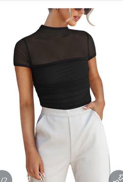 REORIA Sexy Bodysuits For Women Classic Mock Turtle Neck Short Sleeve Slim Fit Shirts Sheer Mesh Ruched Trendy Going Out $7Phoenix, AZ