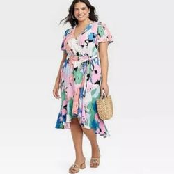 AVA & VIV Flutter Short Sleeve Midi Wrap Dress Size 1X$15Tacoma, WA