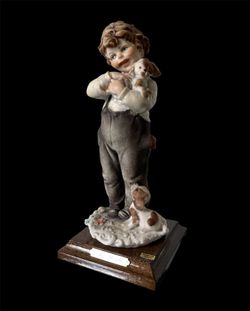 Vintage B.Merli Capodimonte 1983 Florence Figurine Boy w/Puppies Italy