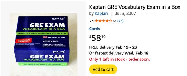 Kaplan GRE Vocabulary Exam in a Box ($58 in value)$10Hawthorne, CA