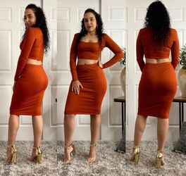 Long Sleeve Crop Top & Rib Knit Midi Skirt Color: Rust Size: S- L Perfect Pairs- co-ordinating outfits is seriously in right now, which means you c$35Fairfield, CT
