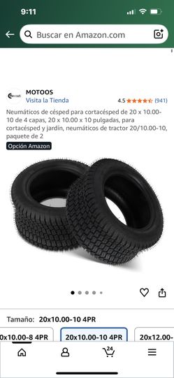 20 x 10.00-10 4-Ply Lawn Mower Tires, 20 x 10.00 x 10 Inch, for Lawn Mower and Garden, Tractor Tires 20/10.00-10, 2-Pack$100Bakersfield, CA