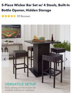 5-Piece Wicker Bar Set w/ 4 Stools, Built-In Bottle Opener, Hidden Storage$350Dyer, IN