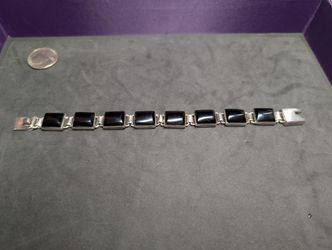 Sterling Silver And Onyx Vintage Taxco Mexico Bracelet Size 7 Inches $180Hesperia, CA