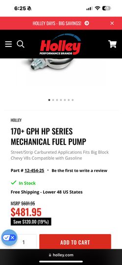 Holley 12-454-25 170+ GPH HP Series Mechanical Fuel Pump$320Rio Rancho, NM