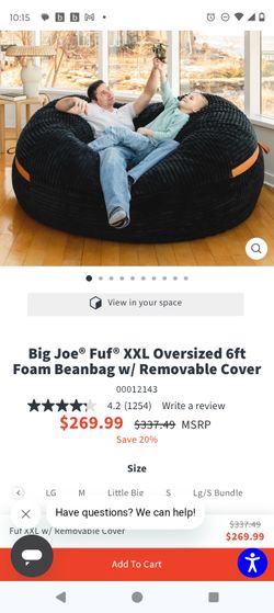 7 Ft Big Joe Bean Bag Chair Black$200Mcloud, OK