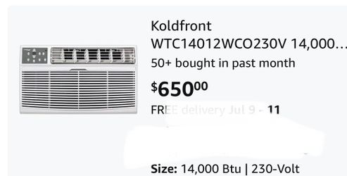 Koldfront WTC14012WCO230V 14000 BTU 230 Volt Through-the-Wall Air Conditioner with Sleep Mode and Remote Control$400Largo, FL