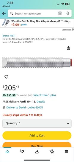 Hilti HIS-N 5/8" x 6-5/8" 258022 - Threaded Sleeve Anchors$30Joliet, IL