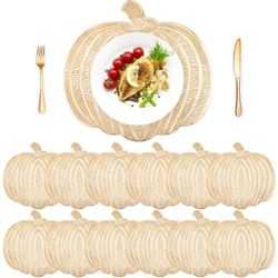 Maxcheck 12 Pieces Thanksgiving Pumpkin Placemats Bulk Vinyl Metallic Autumn Harvest Pressed Table Mats Placemats Thanksgiving Halloween Table Decorat$10Katy, TX