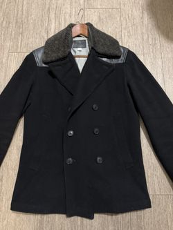 Men’s Fitted Peacoat size Small Leather Shoulder Removable Sherpa Collar $80Laguna Niguel, CA