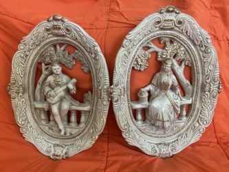 Vintage Chalkware decor Colonial Courting Couple Wall Plaques – Ivory & Gold Ornate Frames – Mid-Century Wall Decor – Set of 2$50Apple Valley, CA