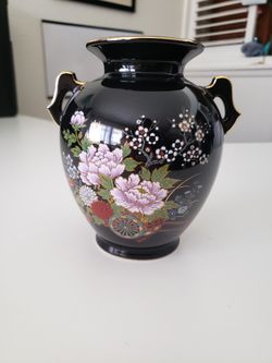 Vintage Japan Fine China 6.5" Black Gold Pink Vase with Flowers- Cherry Blossoms$15Las Vegas, NV
