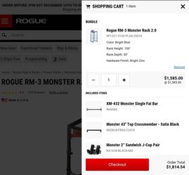 CAN DELIVER Near new Rogue RM-3 100in by 30in Monster Power Rack Blue w pull up jcups straps safety$980Claremont, CA