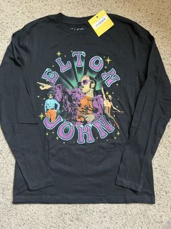 Elton John Pops Up! Glow Retro Collage Photo Long Sleeve Graphic T-Shirt Black S$30Liberty Lake, WA