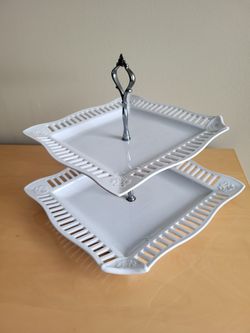 TWO-TIER PORCELAIN DESSERT STAND BY MIKASA BRIDAL LACE - LIKE NEW$15Buffalo Grove, IL