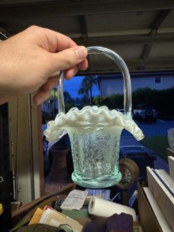 Fenton Aqua Green Blue Iridescent Carnival Glass Basket$40Fort Myers, FL
