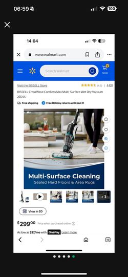 BISSELL CrossWave Cordless Max Multi-Surface Wet Dry Vacuum 2554A$130San Marcos, CA