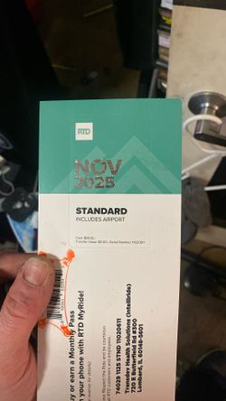Nov 2025 Denver RTD MONTHLY PASS INCLUDES AIRPORT SERVICES$45Denver, CO