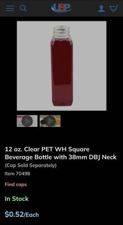 Juice bottles 12 Oz (704 ct).. 2 Oz shot bottles (502ct).. Tamper evident 38mm dbj neck caps 2300ct$170Mount Laurel Township, NJ