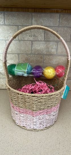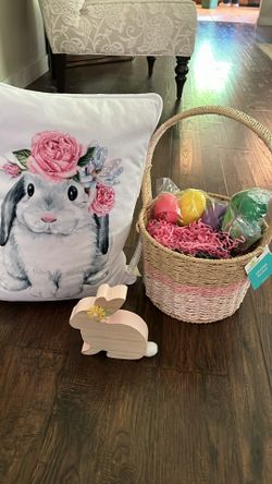 last minute Easter basket/grass/eggs/wooden bunny decor/soft pillow all for $15$15Covina, CA