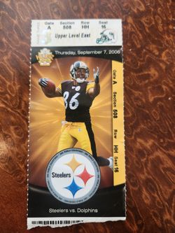Dolphins AT Steelers 9/7/2006 Ticket Stub HINES WARD on Front Of Ticket$30Moorpark, CA