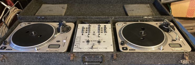 NUMARK PRO TT-1 DIRECT DRIVE TURNTABLES WITH AMERICAN DJ Q-2221 PREAMP MIXER AND UniTec COFFIN$500Fort Lauderdale, FL