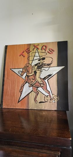 Vintage Painting Texas Cowboy Star 24x24 On Plywood 2007s Used $180Las Vegas, NV