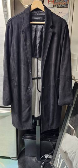 Zara Mens Black Faux Suede Long Jacket Classic Rock size S/M used good $25Las Vegas, NV