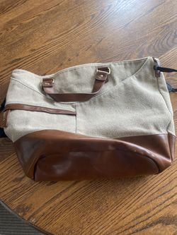 Cooperative Canvas & Faux Leather Travel Tote/Weekender Bag Beige Brown Large Carryall$30Downers Grove, IL